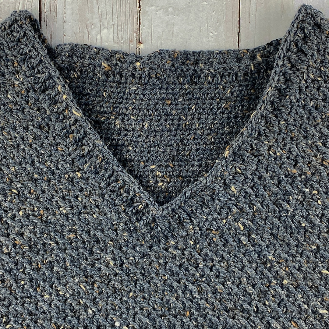I used roughly 1500 yards of City Tweed DK yarn, which is a DK/light weight yarn. This was for a size 2XL. The pattern is written for sizes S, M, L, XL, 2XL, 3XL, and 4XL. I include yardage for each size–these are approximate.