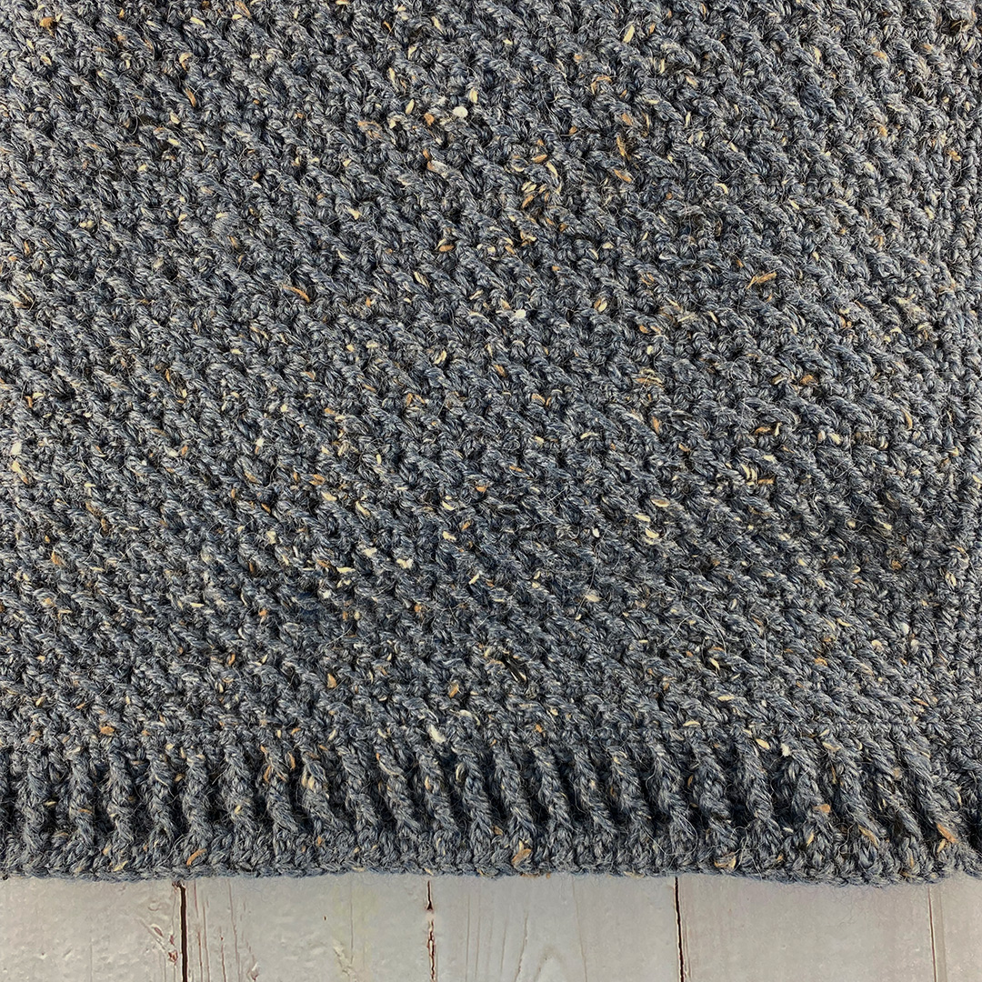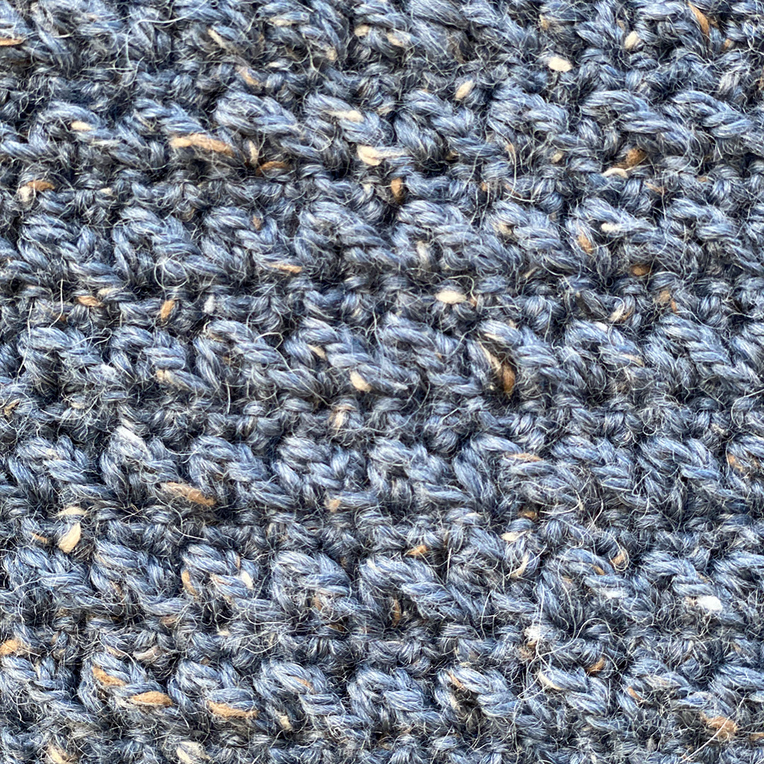 The color is a grayish blue and the tweed coloring is just perfect with it! The texture and stitch definition with this yarn really shines well.