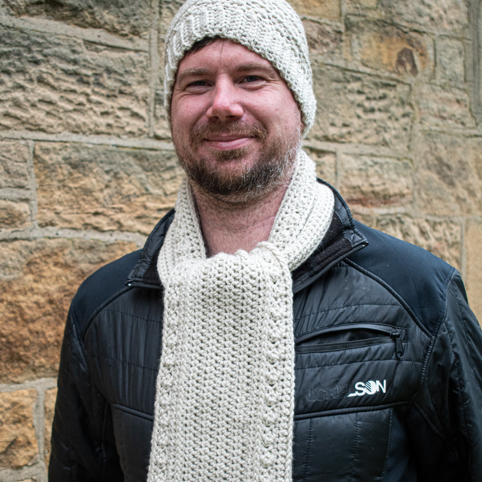 My model for this was Paul. He comes across as quiet but once you get to know him he is a bit of a clown! Just look at what I had to work with LOL. He is sporting the matching Samantha’s Hope beanie in these pictures too.