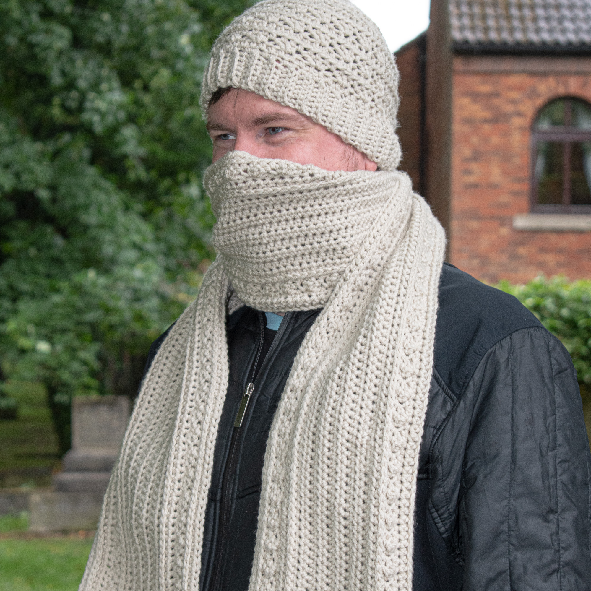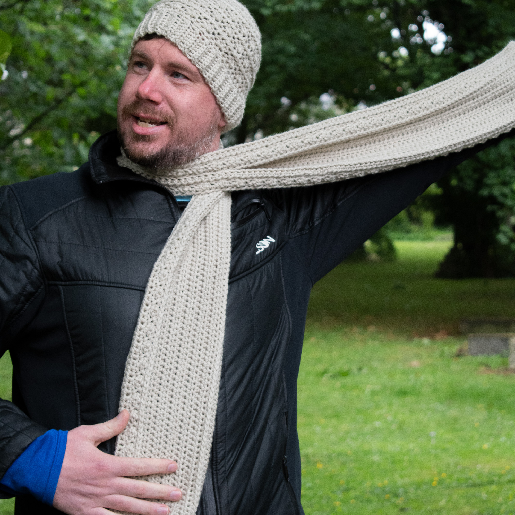 I had made the unisex hat and the cowl which females would like. Now I had the perfect opportunity to make the unisex scarf. I think it finishes off the collection rather well as you can make a set for her and a matching set for him. It is surprising how few patterns there out there that are suitable for men as well.