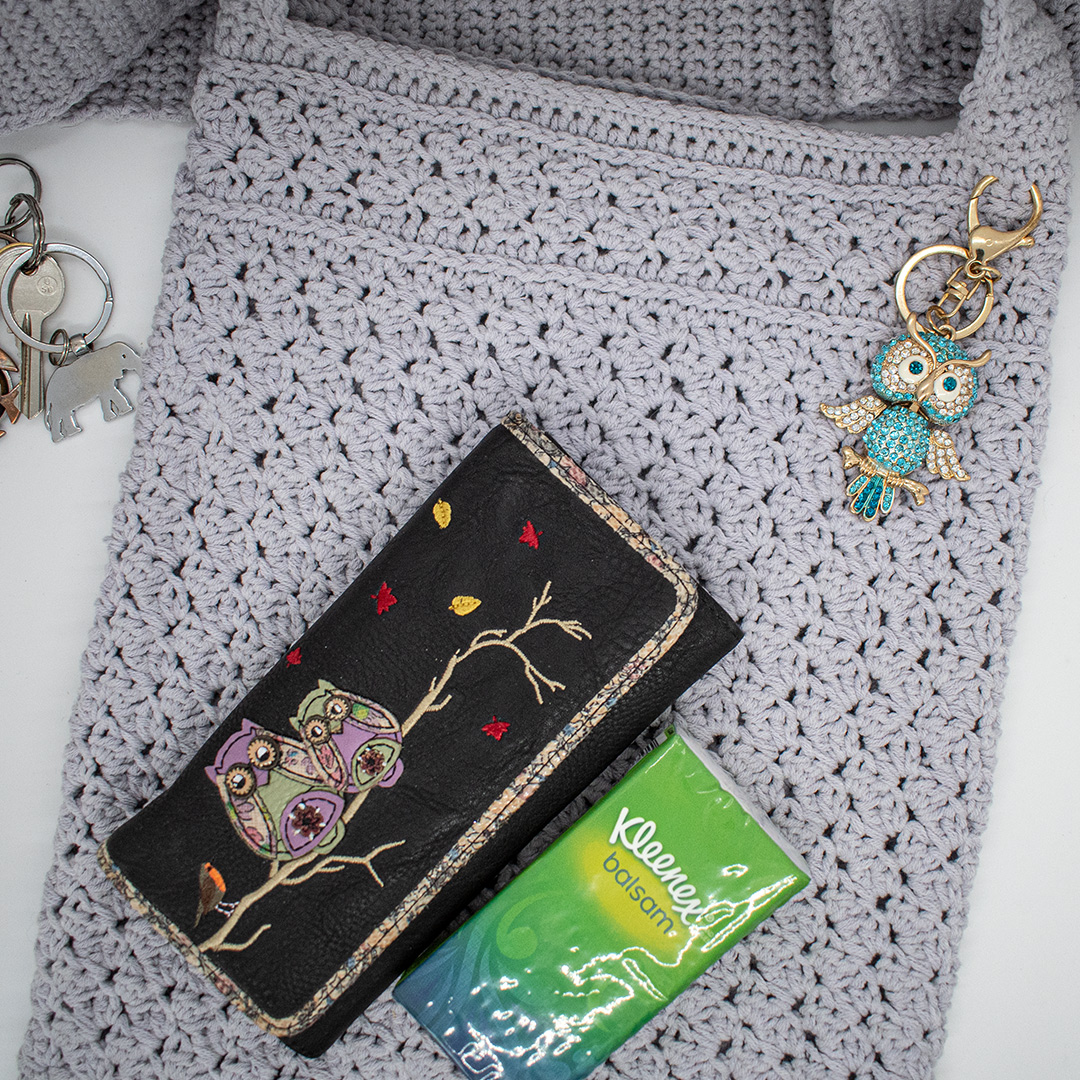 There is oodles of room in this bag – much more than you would think. And it is easily customisable to suit your needs. You could add a clasp, a drawstring or pretty ribbon around it, embellish it with your favourite appliqué, or line it and put in a zip. The possibilities are truly endless. I love how the use of different coloured yarn or cotton gives a completely different look to this bag.